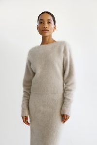 Regarding sweaters, Almada Label’s Zoe Crewneck in Taupe is essential for fall. It’s a cozy, soft knit that feels luxurious without overly bulky. I love its neutral taupe color, which pairs effortlessly with jeans and skirts. The cut is relaxed, which gives it that effortless, laid-back vibe—perfect for an evening spent fireside or for dressing up with accessories for a night out. This crewneck balances warmth with a lightweight feel, ideal for autumn’s unpredictable temperatures.