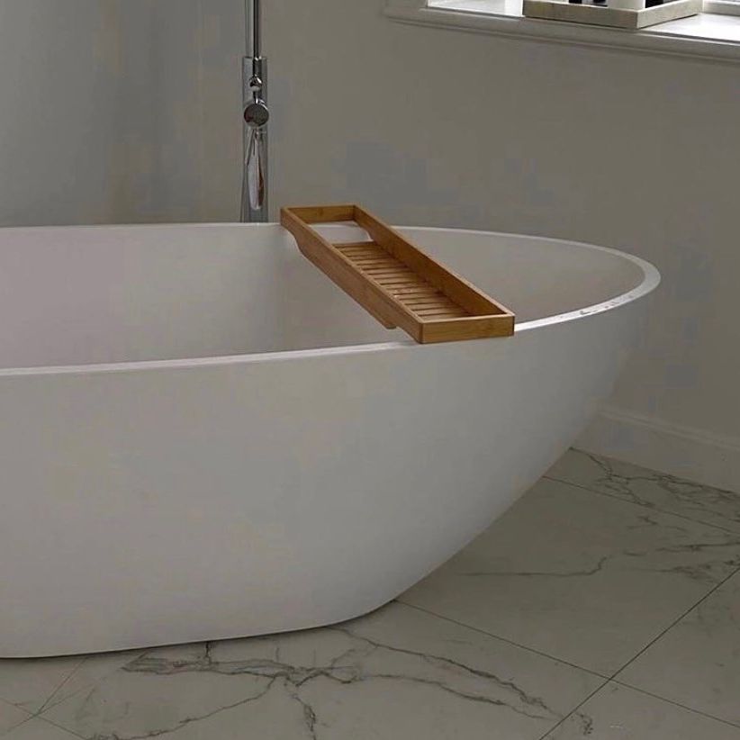 To enhance my bath experience even more, I use the Gardner Bamboo Bathtub Tray. This tray spans across the length of my bathtub, offering plenty of space to hold my bath essentials. It comes with a built-in book, phone, or tablet rest, which I love for enjoying my favorite book or watching a show during my bath. The cup holder is another thoughtful feature that allows me to enjoy a glass of wine or tea without worrying about spills. This tray has truly elevated my bathtub setup, making it feel more luxurious.